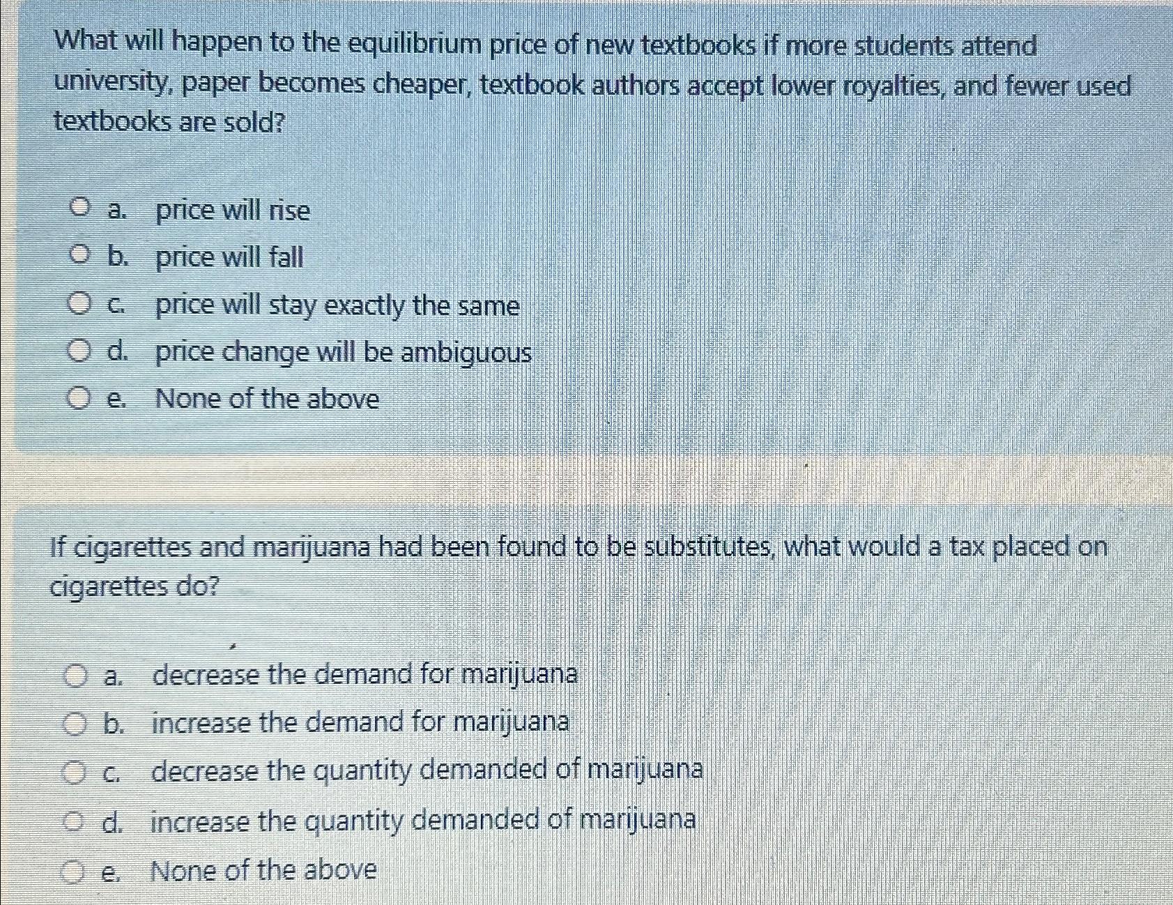 Finding equilibrium price and quantity using linear demand and supply What Will Happen To The Equilibrium Price Of New Textbooks what will happen to the equilibrium price of new textbooks if more students attend college, paper becomes cheaper, textbook. This increase in both demand and supply. If textbook authors accept lower royalties the cost of production for textbooks will decrease, so. What will happen to the equilibrium price of new textbooks if more students attend college, paper becomes cheaper,.. What Will Happen To The Equilibrium Price Of New Textbooks.